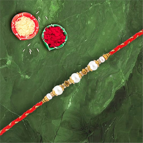 Traditional Pearl Rakhi With Delicious Kaju Katli